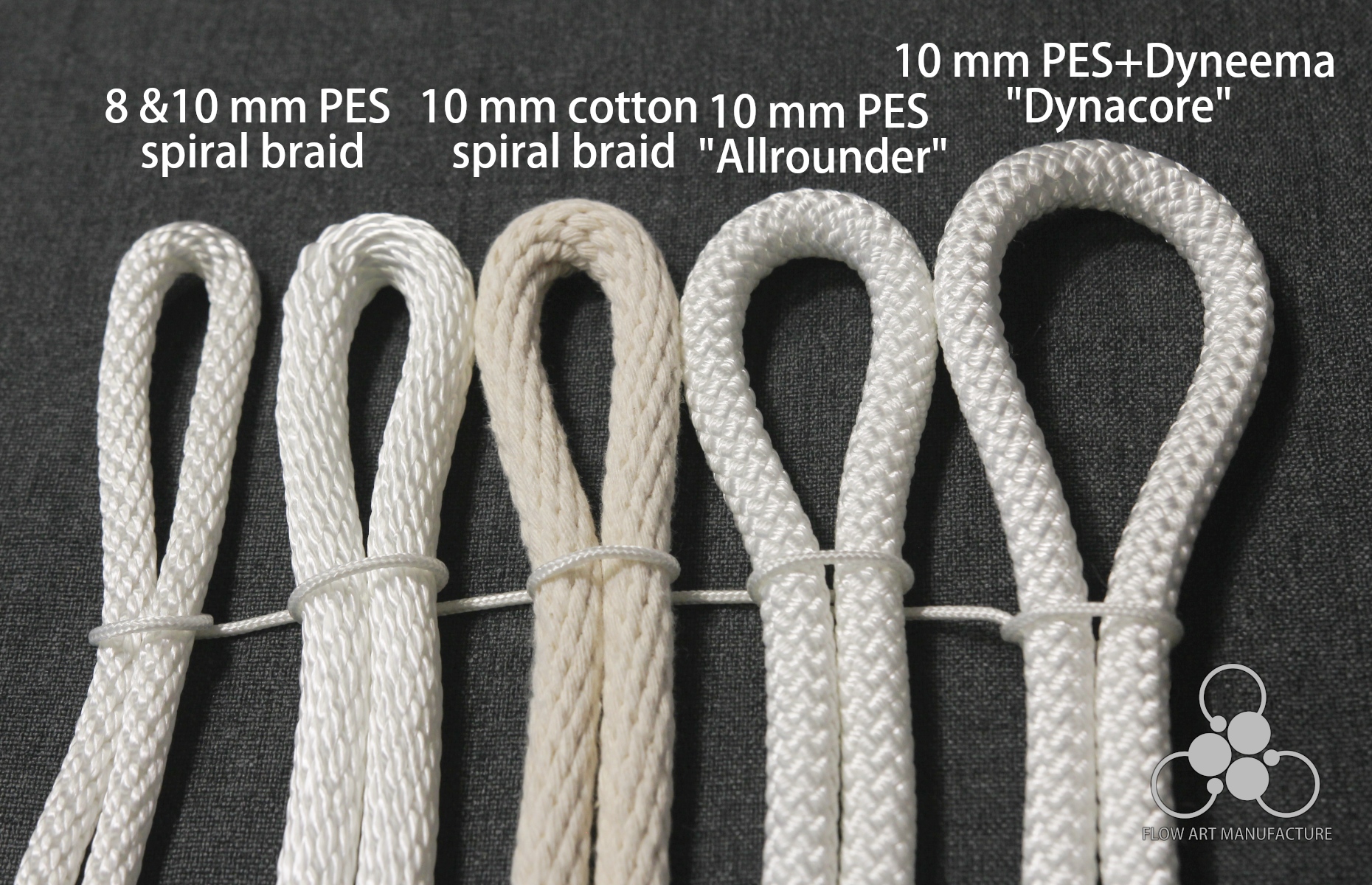 - Cotton rope: natural feeling, great for spinning and also suited for contact meteors. Slightly stretchy, hence not perfectly suited to juggling. Available in 10 mm.